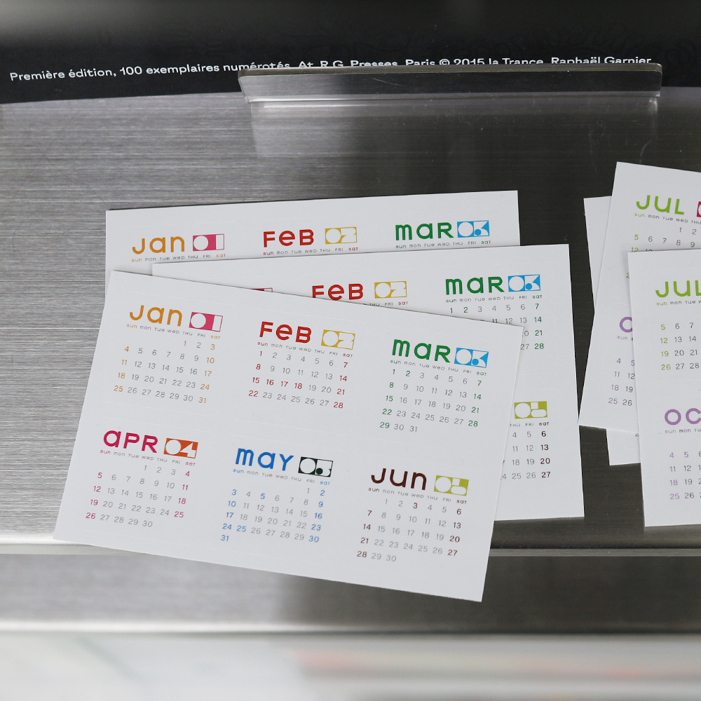 어디든 쉽게 붙였다가 떼어낼 수 있도록 리무버블 스티커지로 제작된 달력 스티커입니다.