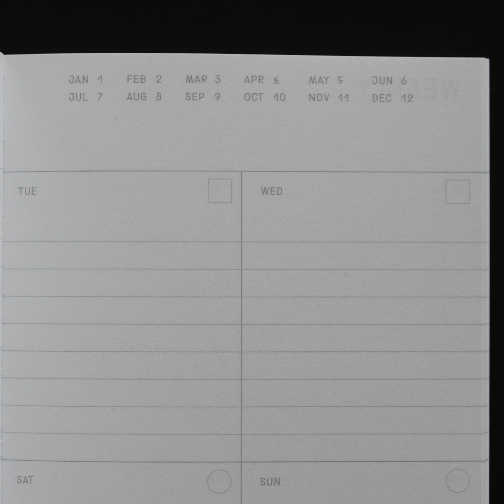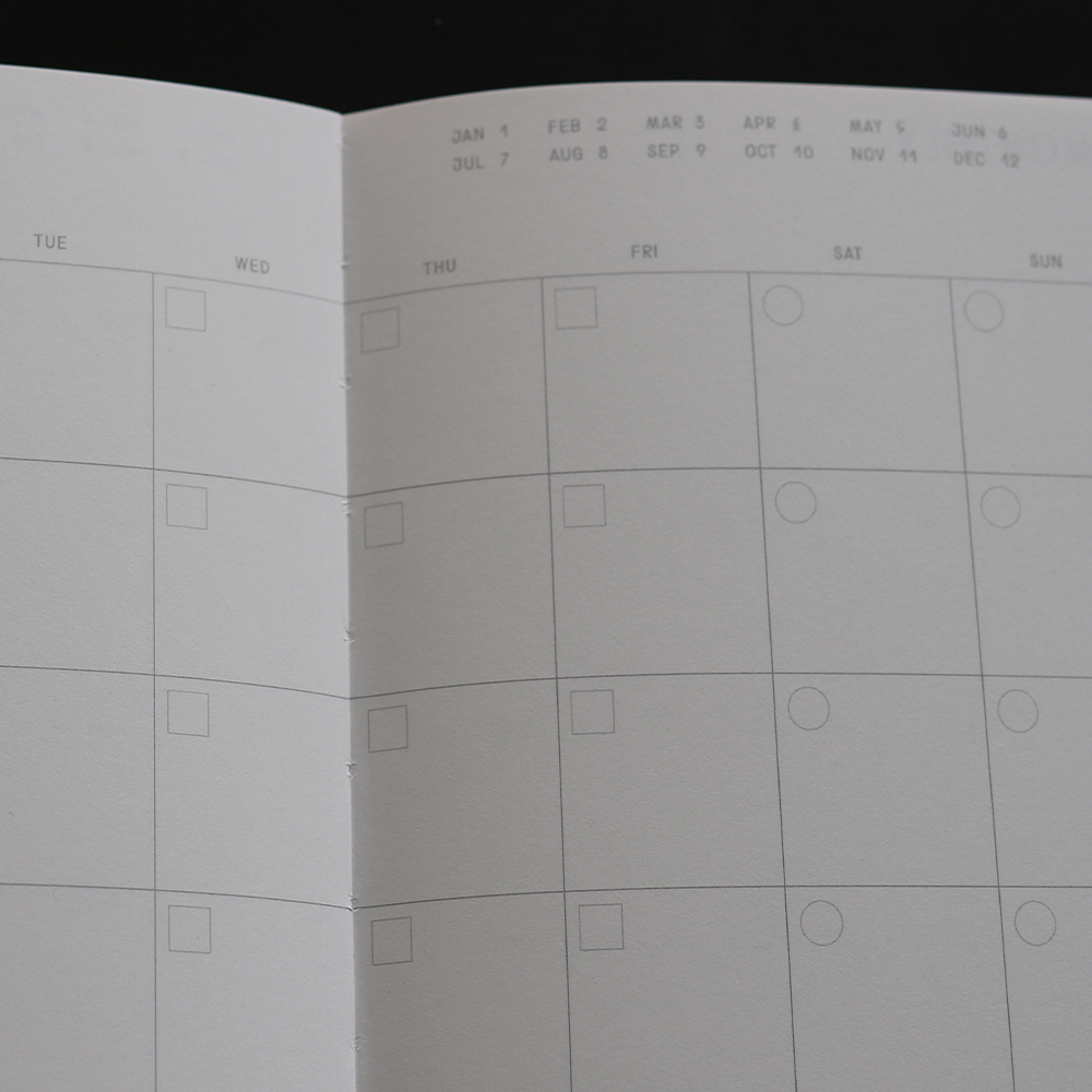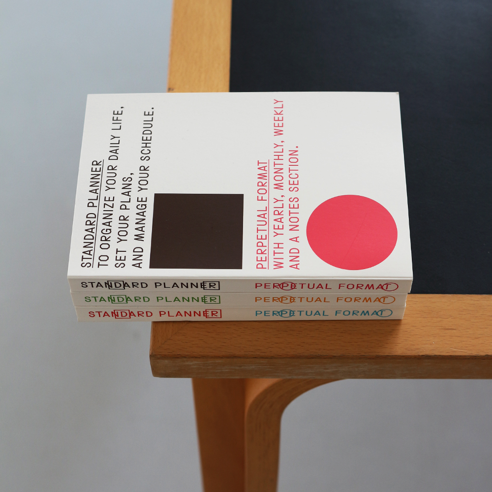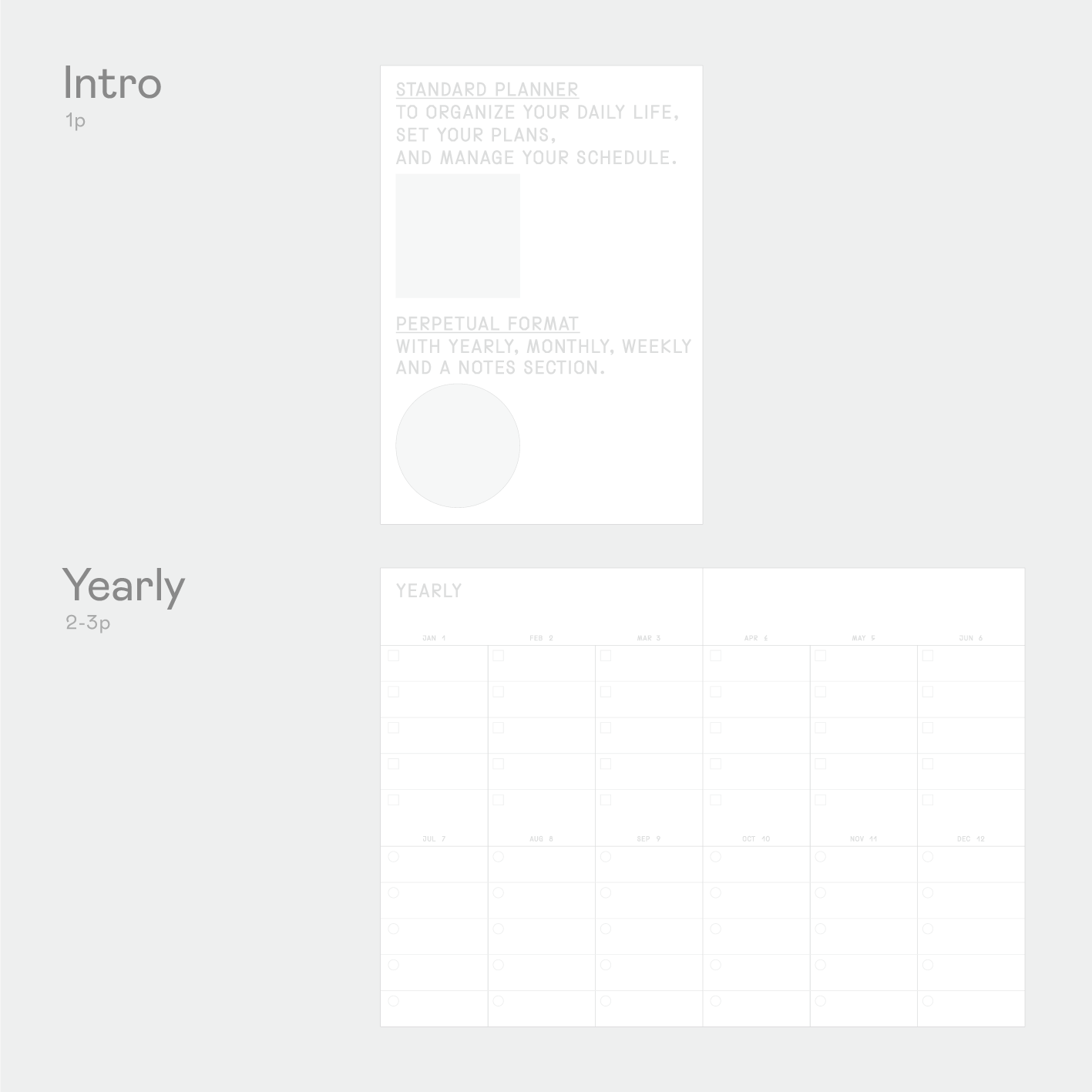스탠다드 플래너는 일상을 정리하고 계획을 세우며 스케쥴을 잘 관리할 수 있도록 연간 → 월간 → 주간 → 프리 노트 순서로 구성된 만년형 플래너입니다.