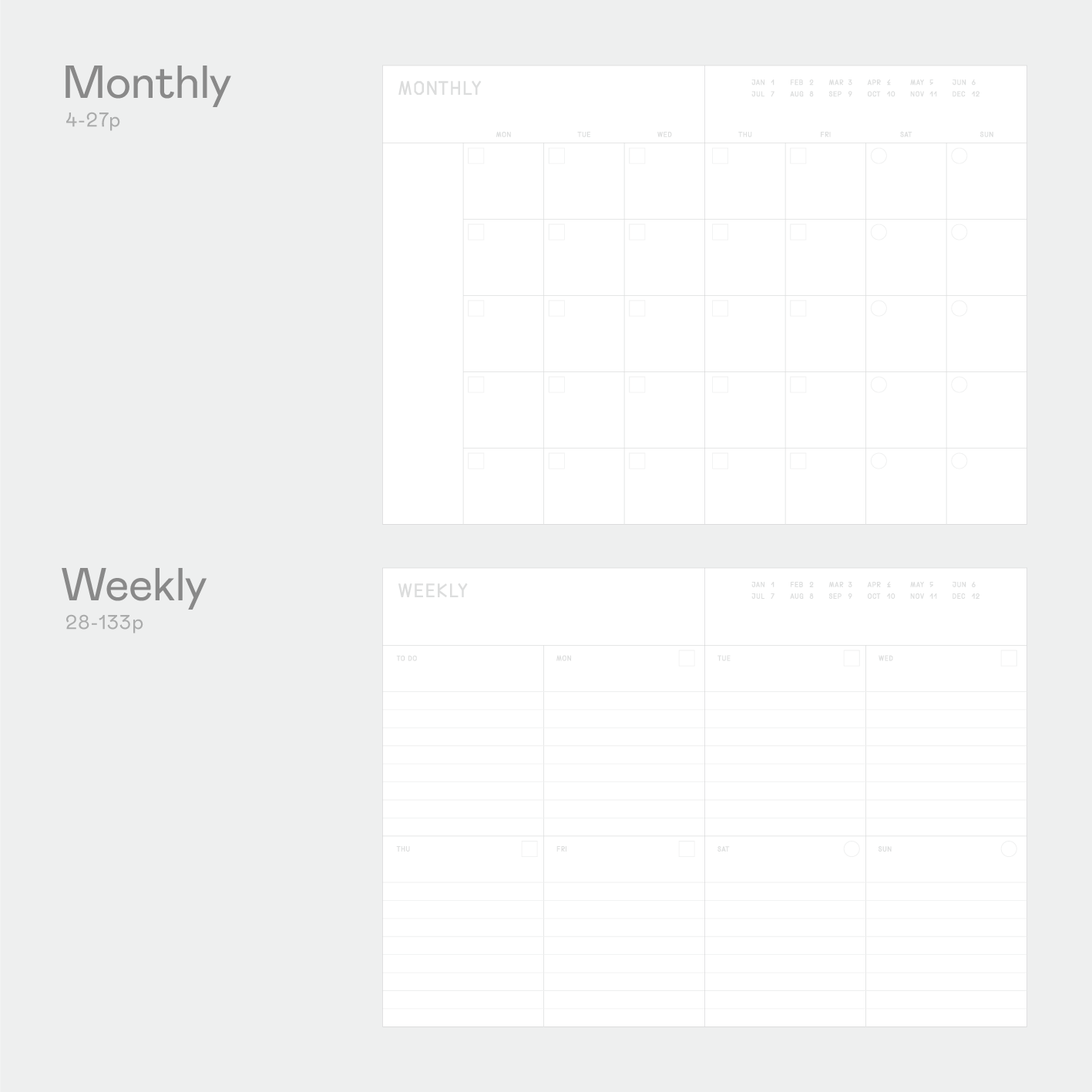 군더더기 없이 꼭 필요한 페이지만 담은 플래너로 일상을 계획해 보세요!