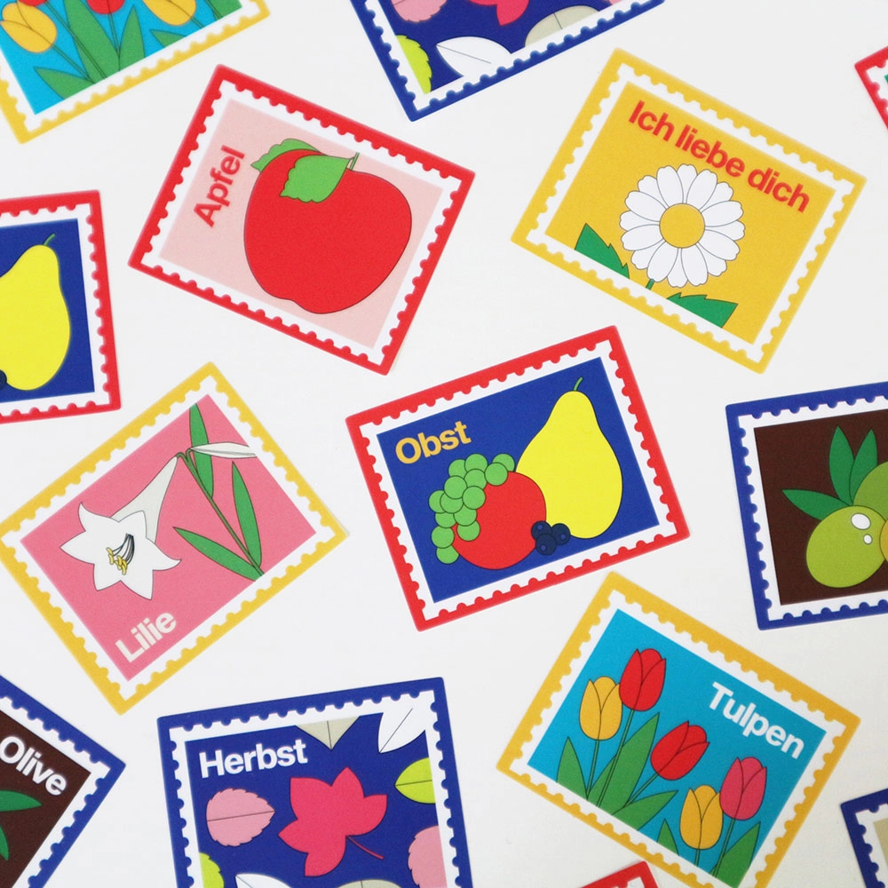 우표에서 자주 활용되는 일상적인 테마로 구성하였으며, 한 장에 12개가 떼어지는 무광 스티커 입니다. 실제로 편지를 보낼 때 활용할 수는 없지만 다양하게 부착하여 꾸미기 좋은 아이템 입니다.